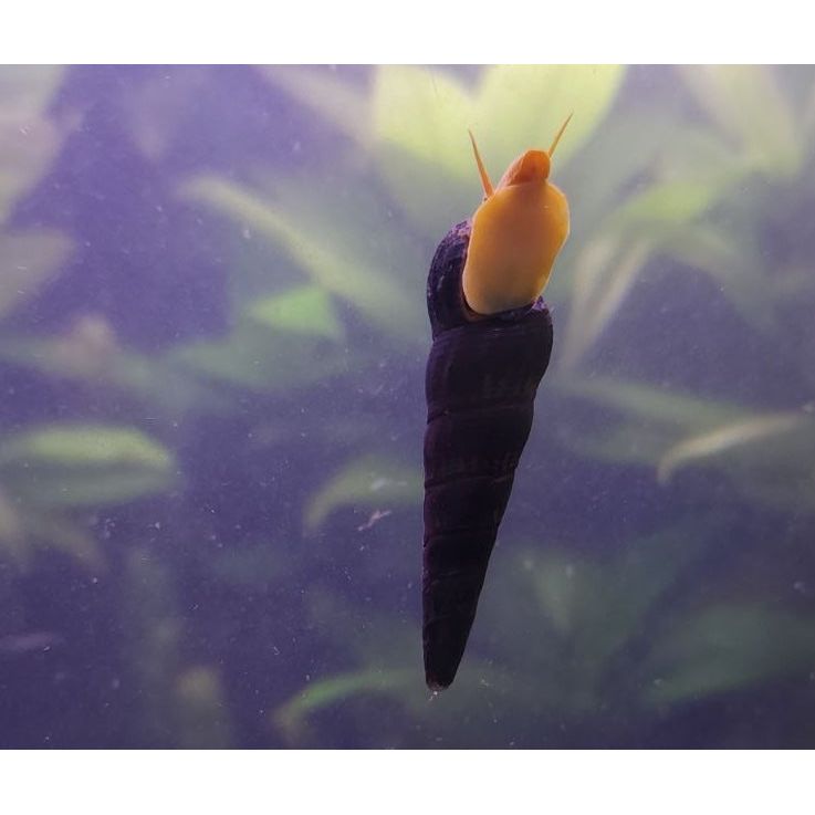 The Orange Poso Rabbit Snail (Tylomelania Gemmifera "Orange") is one of the most attractive snails in the aquarium hobby. They have a yellowish orange body with a long dark spiraled shell.