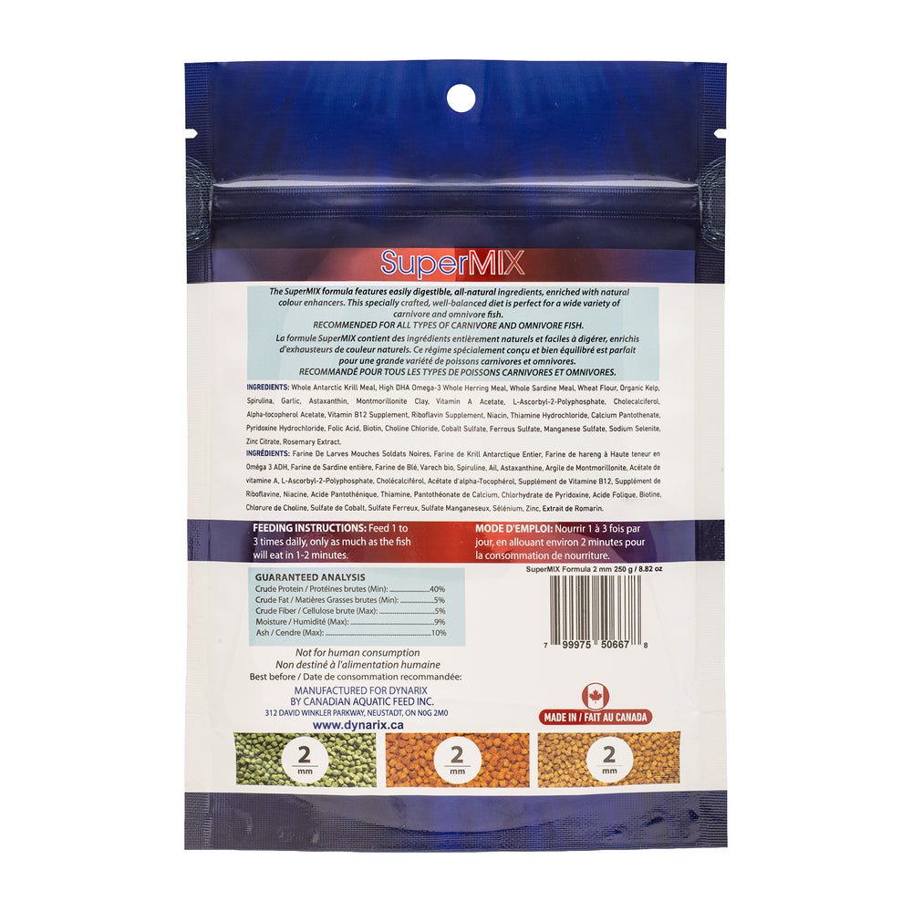 DynariX SuperMIX Fish Food, 2mm Pellets, 250g, Krill-Cichlid-Veggie Blend
