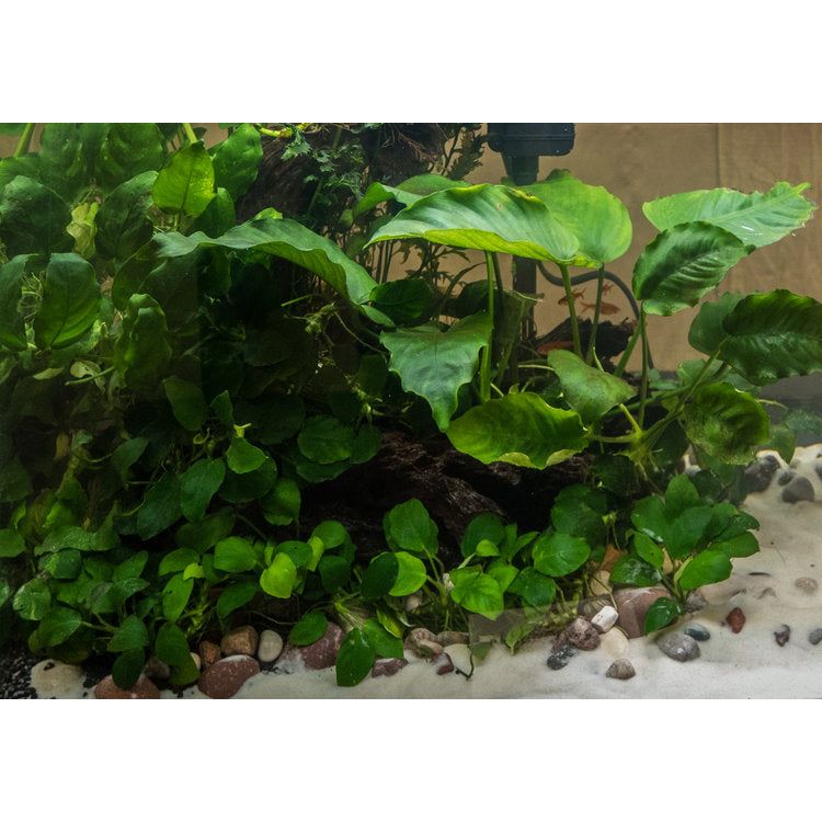 Anubias barteri var. 'nana petite' is a relatively new addition to the aquarium plant trade. Anubias nana petite is a minute variety of Anubias barteri var. 'nana' that can be used in the smallest of places and is an excellent foreground plant.  Anubias nana petite attaches to wood or rocks just like the other types of Anubias but is much smaller. The growth is also slower, and remains very compact, with tight clusters of leaves on short petioles (stems)  This is a great aquarium plant for nano set ups or in areas of larger tanks where a smaller plant is desired.  Anubias nana petite is a great aquarium plant with many uses.