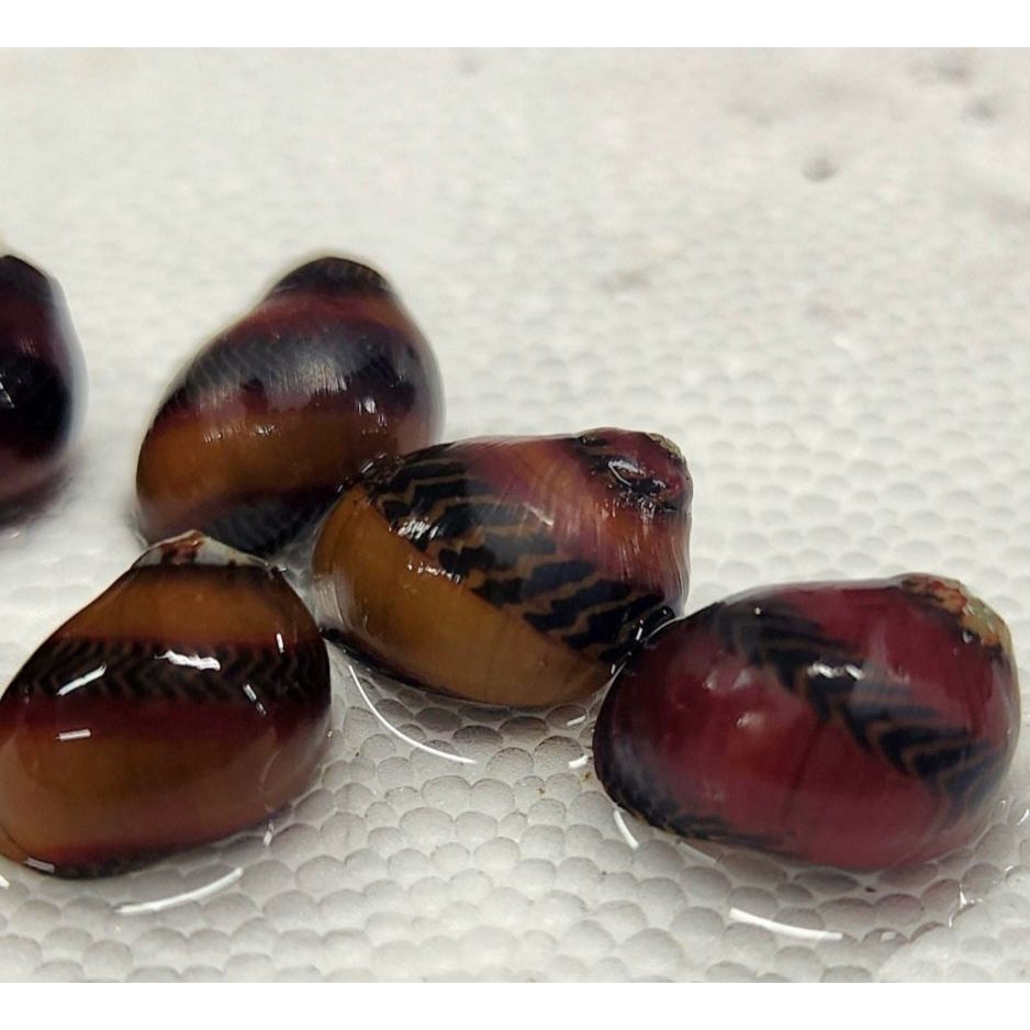 This is a variety of 3 different Nerite snails of my choosing. These snails come in a variety of colors and patterns. The type in every pack will vary and there's no guarantee you'll get the exact snail from the pictures. The Nerite snails that are available for this package are the Batik, Batman, Pumpkin, Red Racer, Spiky, Zebra, Tiger, Pink Lady,Racetrack Pattern, Tricolor Horned and Military Helmet.
