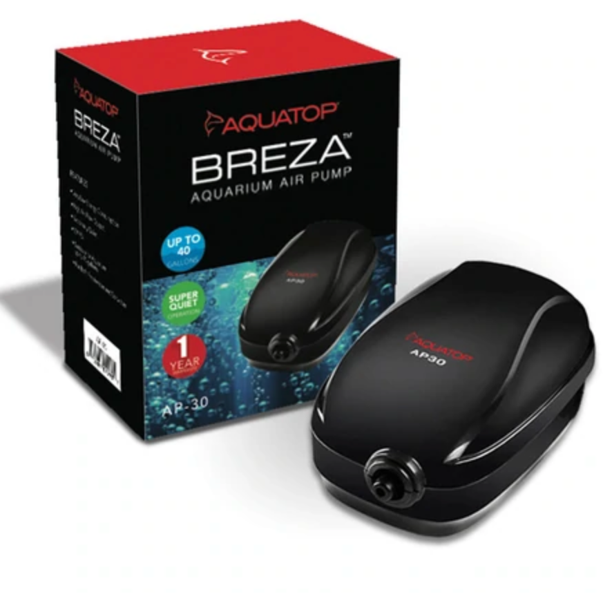 The AP-100 is the largest in the series and is capable of aerating aquariums ranging from 40 to 100 gallons, and the AP-100 includes a control knob for an adjustable flow rate. AQUATOP's BREZA Series of aquarium air pumps give your aquatic creatures the oxygen they need in order to thrive. An air pump system adds air bubbles, creates current and agitates the water to help in filtration. An air pump also aids in maintaining stable and healthy pH levels inside the aquarium.